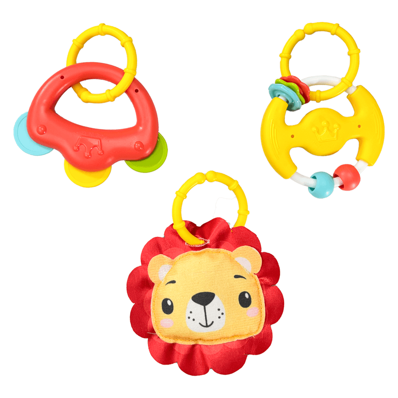Feito com materiais seguros e atóxicos, oferece uma superfície macia, acolhedora e confortável, garantindo o bem-estar do bebê a cada brincadeira. O bichinho de pelúcia emite sons suaves, enquanto os outros dois brinquedos proporcionam estímulo sensorial e ajudam a aliviar o desconforto durante a fase de dentição.