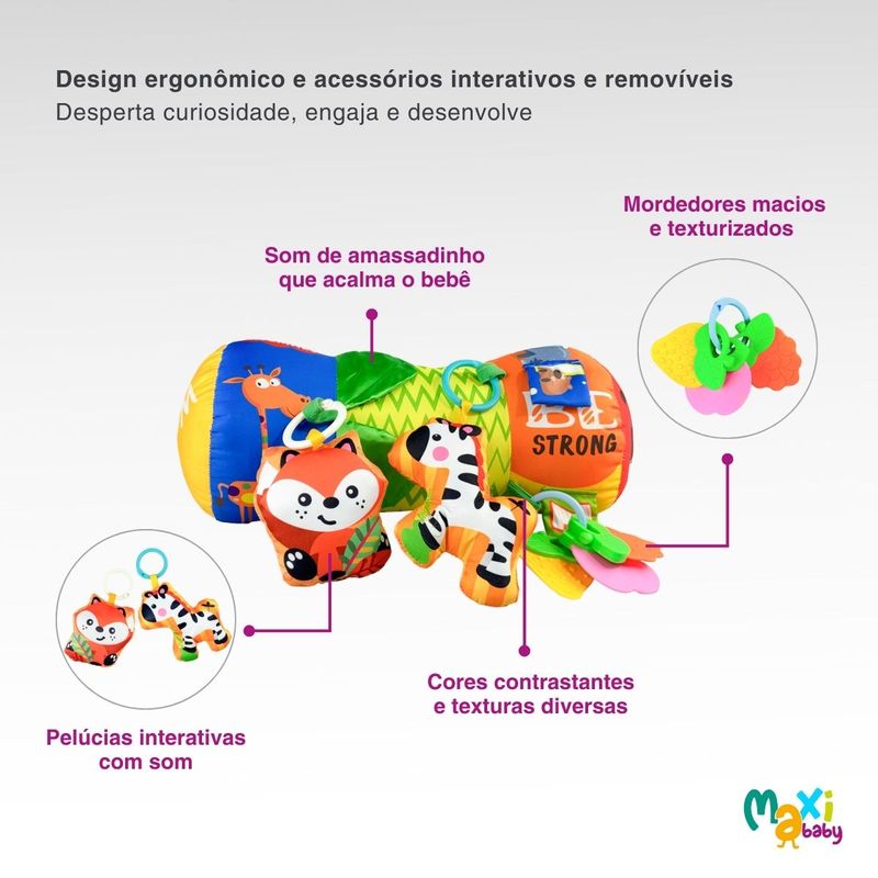 Almofada Rolinho de Atividades e Desenvolvimento Para Bebê com Mordedor Removível Maxi Baby
