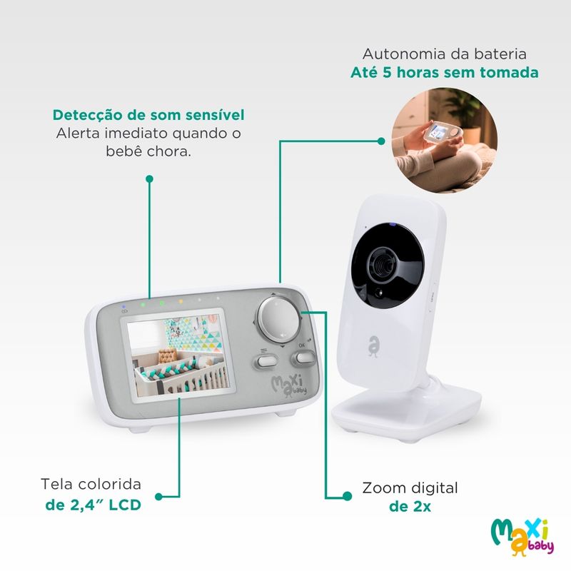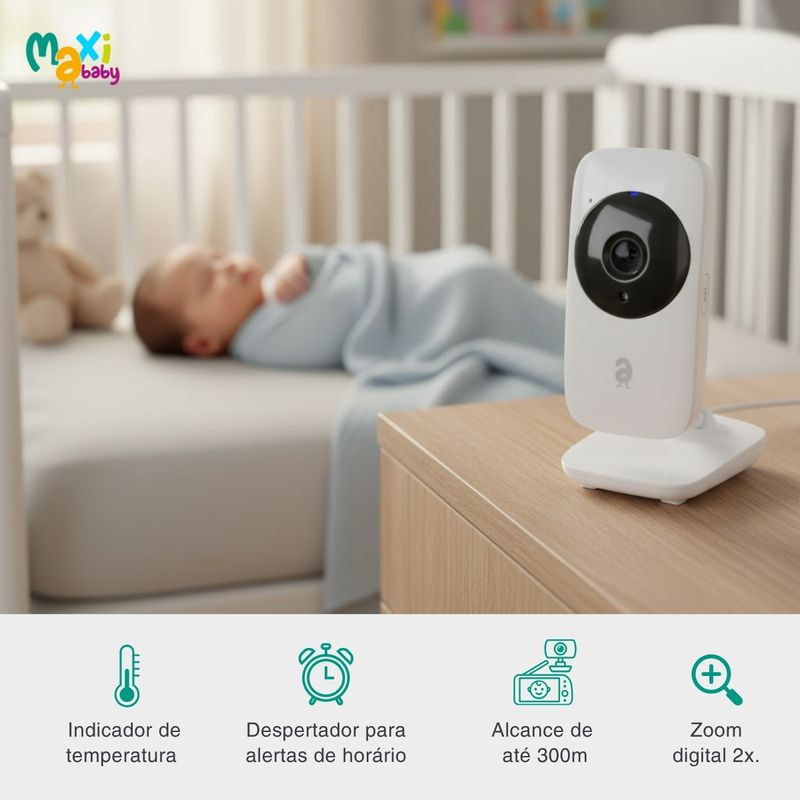 Babá Eletrônica Câmera Para Bebê Sem Fio Com Visão Noturna Tela LCD 2.4 Monitoramento de Temperatura de Ambiente Zoom Digital Baby ON Maxi Baby