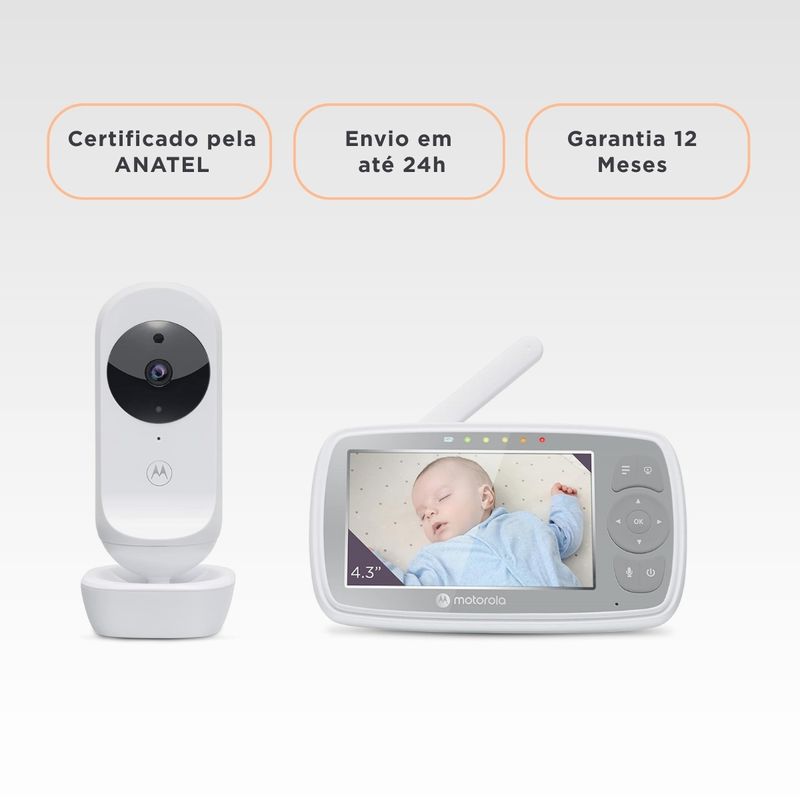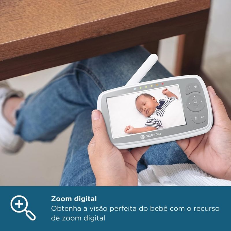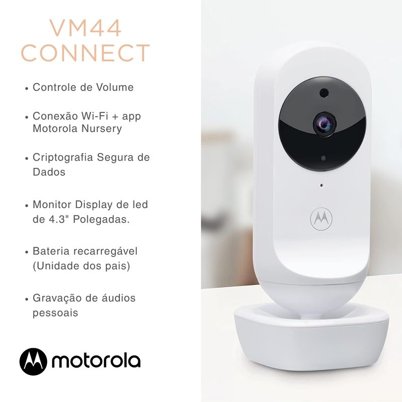 Babá Eletrônica Câmera Para Bebê VM44 Connect Monitor LCD 4.3 Visão Noturna Wi-Fi Áudio Bidirecional Canção de Ninar Motorola