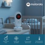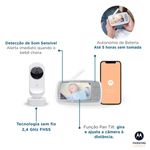 - Combinação WiFi + FHSS — permite operação local e visualização remota via app Motorola Nursery (compatível com iOS e Android).
