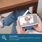 A babá eletrônica Motorola VM44 Connect oferece controle total da visualização com zoom digital e rotação manual da câmera, permitindo acompanhar cada movimento do seu filho com precisão.