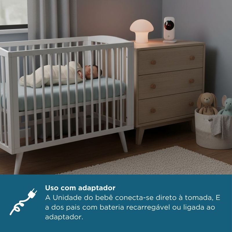 - Fonte de alimentação direta na tomada para a câmera do bebê