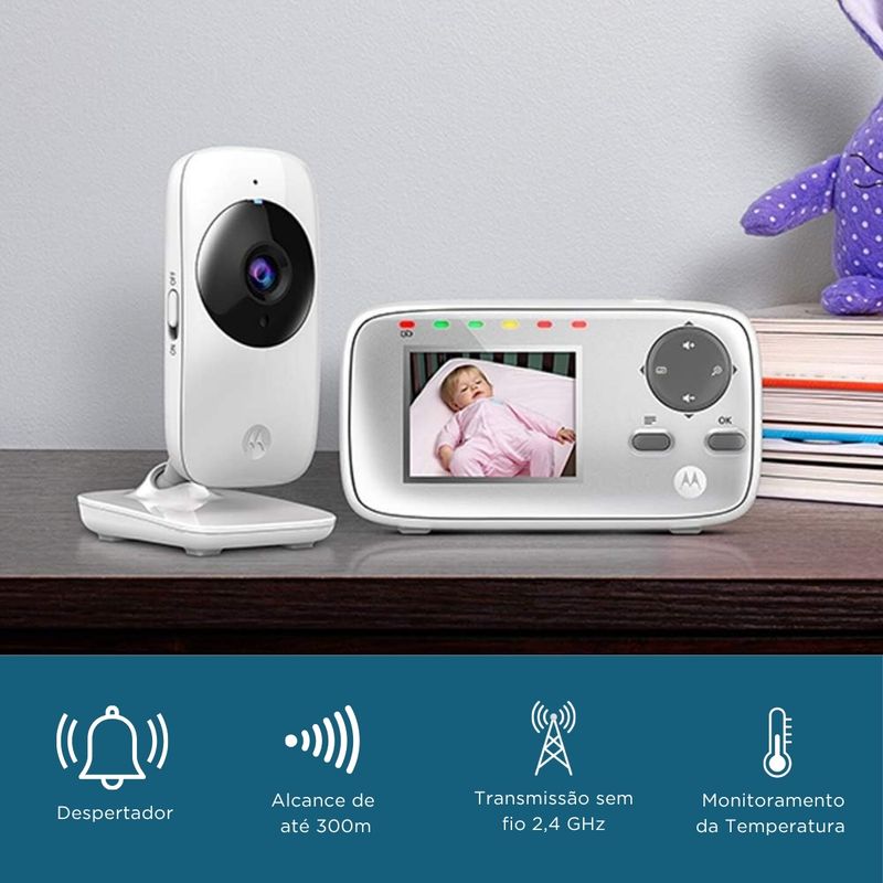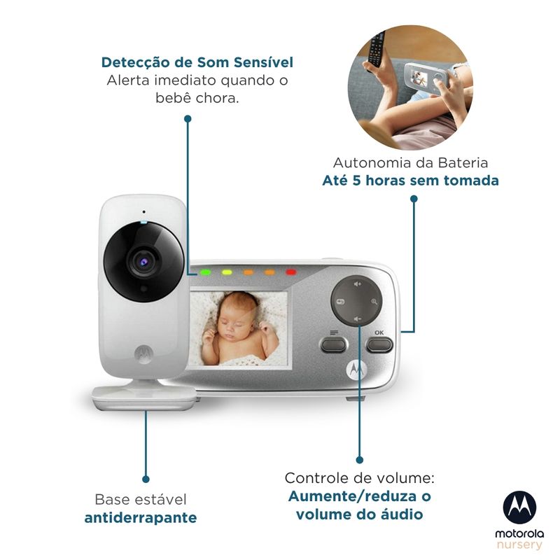 Babá Eletrônica VM482 Com Monitoramento de Temperatura de Ambiente Visão Noturna e Zoom Digital Motorola Áudio unidirecional Motorola