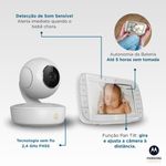 - Tecnologia Pan Tilt: Permite mover, inclinar e aplicar zoom na câmera diretamente pelo monitor dos pais.