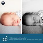 A Motorola VM50G também cuida do bem-estar do ambiente: o monitoramento de temperatura ajuda você a manter o quarto sempre agradável, enquanto as canções de ninar e sons da natureza criam uma atmosfera tranquila e relaxante para o sono do bebê.