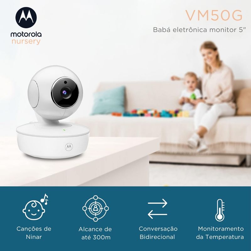 Babá Eletrônica VM50G Monitor LCD 5.0 Visão Noturna Zoom Digital e Áudio Bidirecional Câmera Panorâmica - Motorola