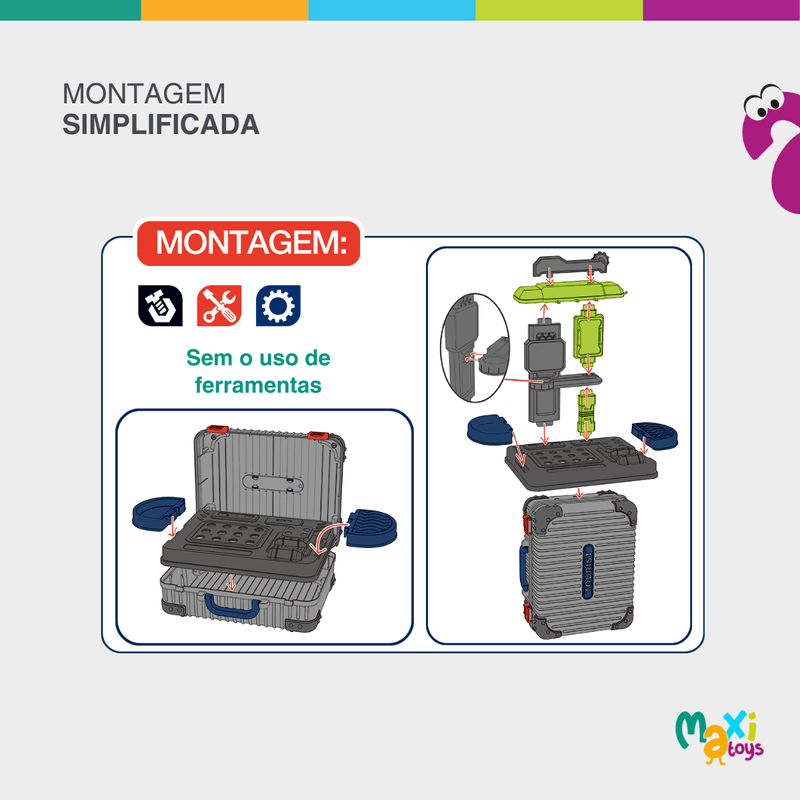 A Bancada Maleta de Ferramentas Infantil 3 em 1 Maxi Toys é o brinquedo ideal para crianças curiosas e criativas que adoram brincar de consertar! Com design educativo e interativo, essa bancada de ferramentas infantil estimula o desenvolvimento da coordenação motora, raciocínio lógico e imaginação.