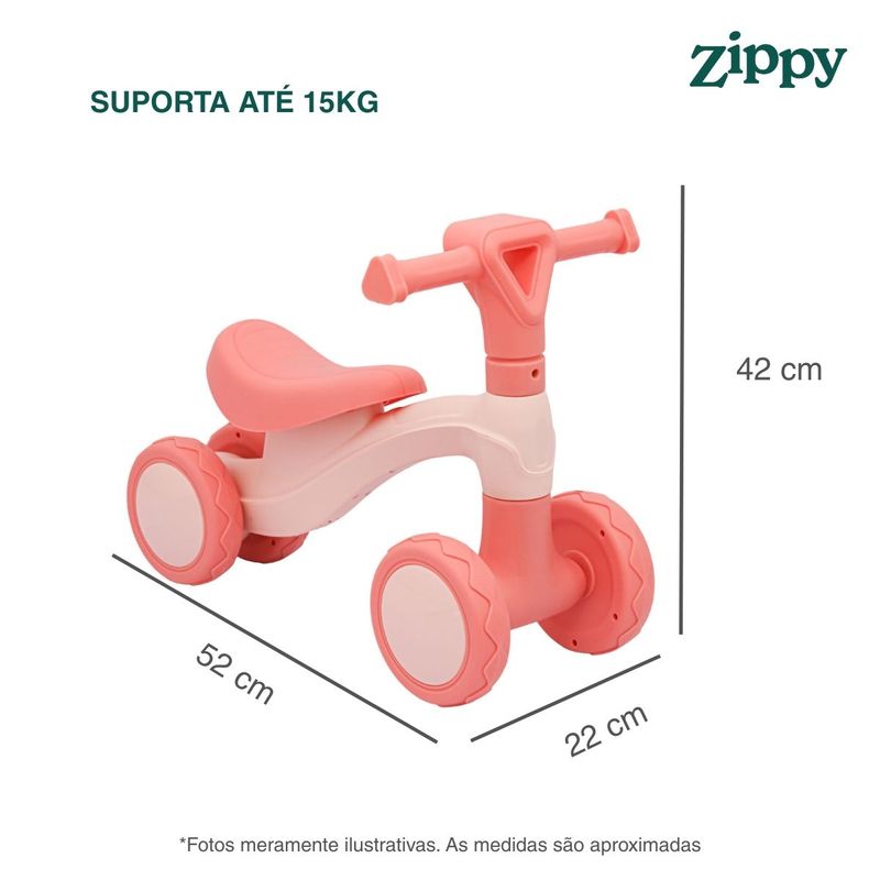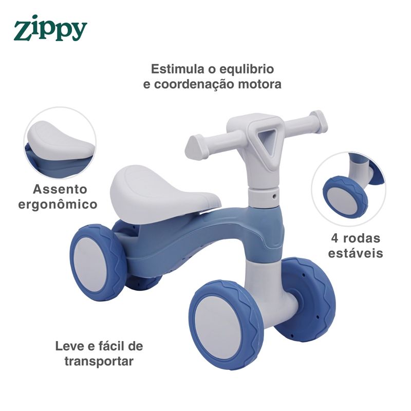 Garanta os primeiros passos do seu bebê com segurança, diversão e muito estilo com a Bicicleta Andador Infantil de Equilíbrio Zippy Toys.
