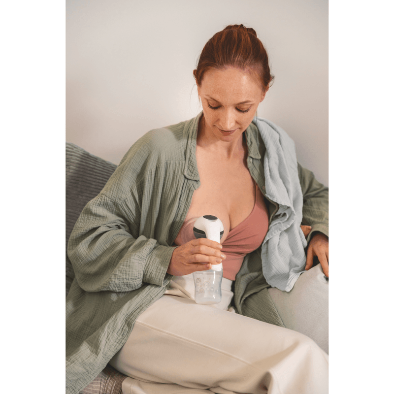 Equipada com almofada de silicone macia, esta bomba possui texturas estimuladoras que ajudam a ativar o fluxo de leite com suavidade, garantindo uma sensação agradável durante o uso. A almofada adapta-se perfeitamente a todos os tamanhos de seio, oferecendo um encaixe seguro, confortável e sem vazamentos.
