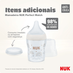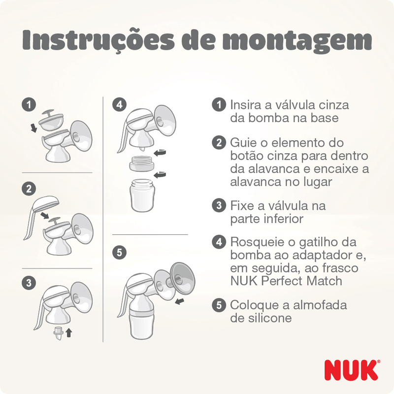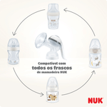 A Bomba Manual NUK Perfect Match também se destaca pela sua praticidade no dia a dia: possui poucas peças, o que facilita muito na hora de montar, desmontar, limpar e esterilizar. Além disso, é totalmente compatível com todos os frascos de mamadeiras NUK, oferecendo ainda mais conveniência e integração com os itens já utilizados no dia a dia.