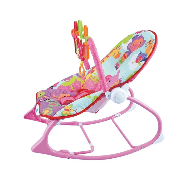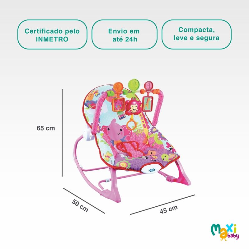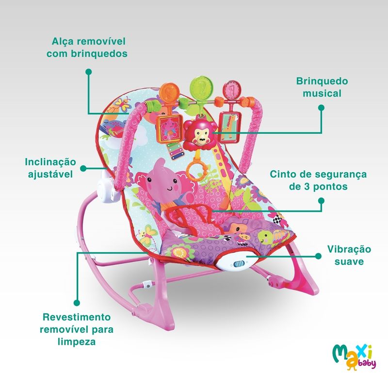 Cadeira de Descanso e Balanço Para Bebê Vibra e Toca Música FunTime Rosa Maxi Baby