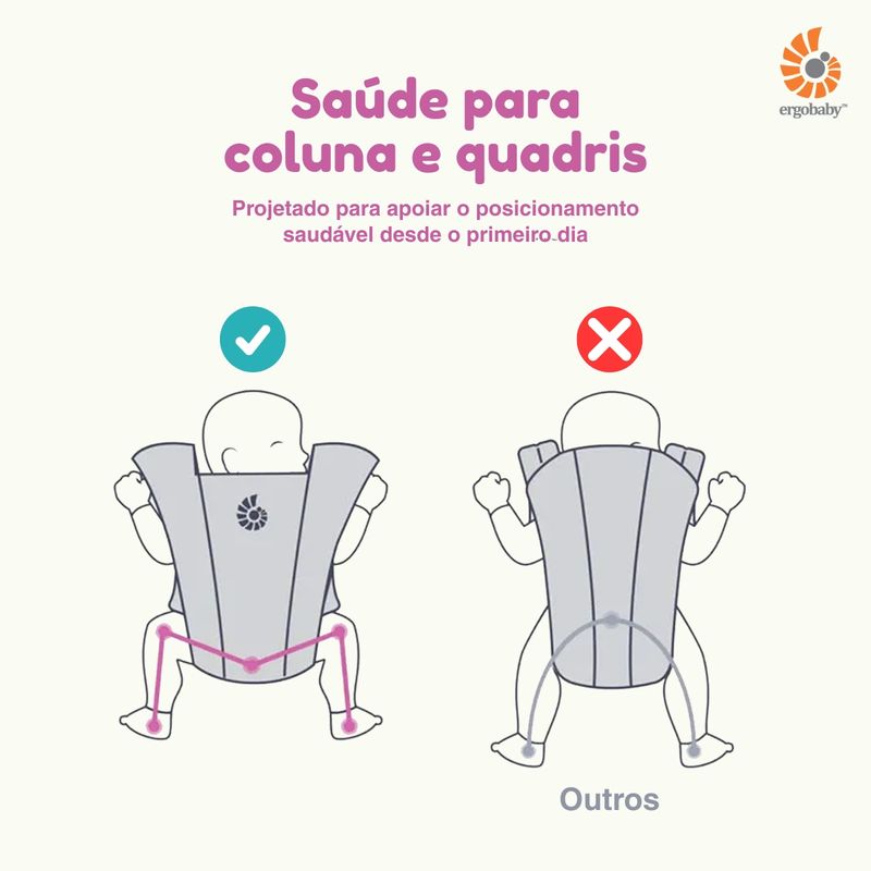 - Posição ergonômica em M: garante o alinhamento saudável dos quadris em todas as formas de uso.