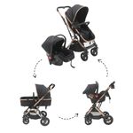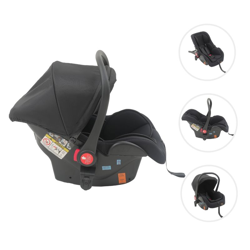 - Composição/ Material: Carrinho: Estrutura em aço e alumínio e revestimento em poliéster. Bebê conforto: PP e Poliéster