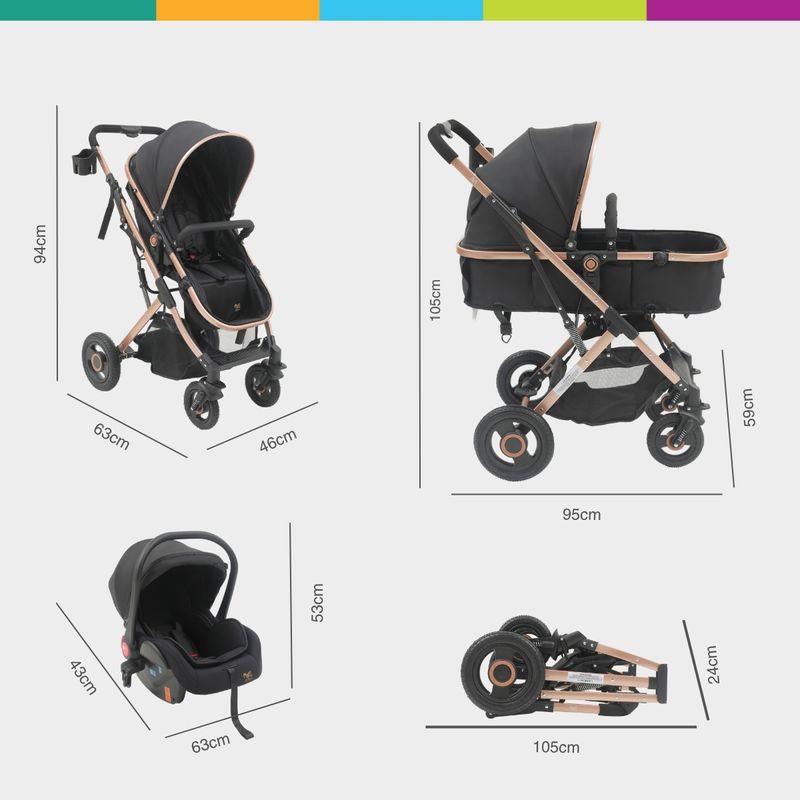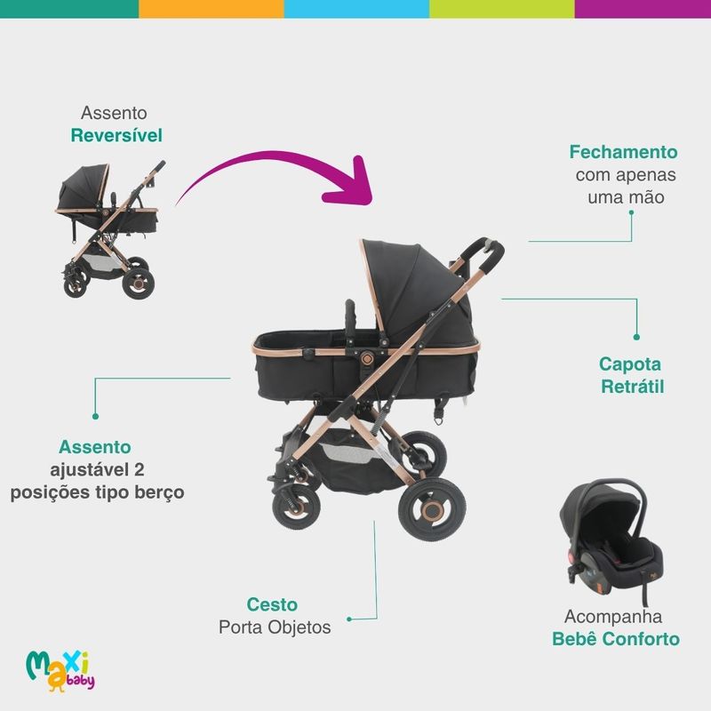 Carrinho de Passeio com Bebê Conforto Assento Reversível Berço Moisés Elysian Maxi Baby
