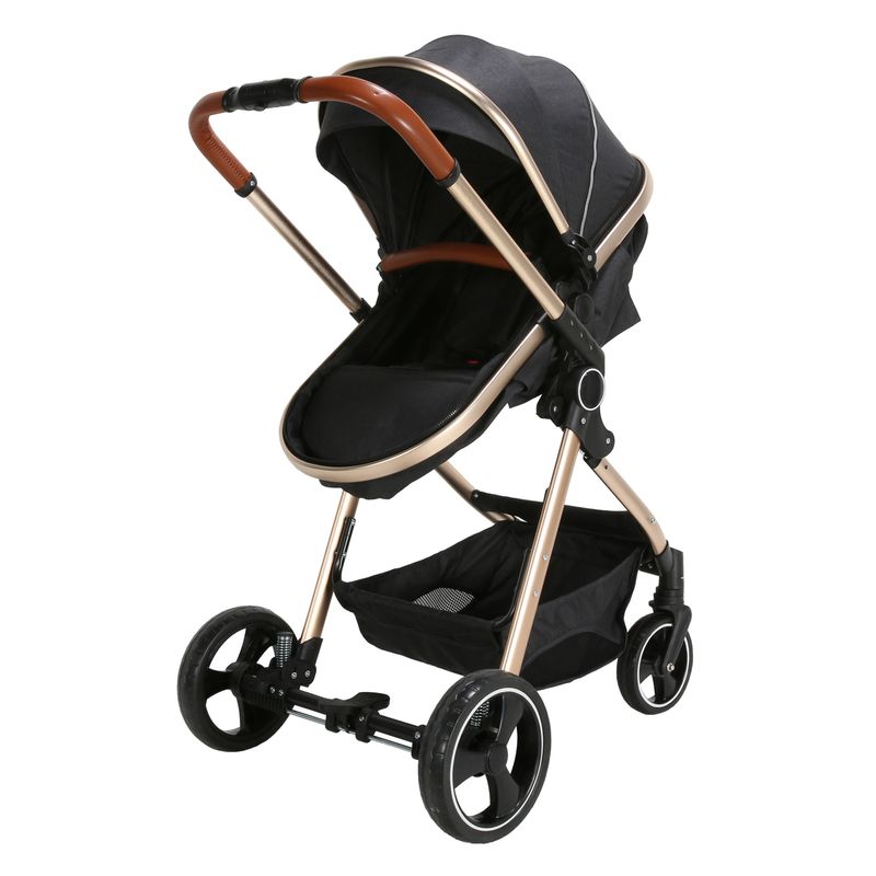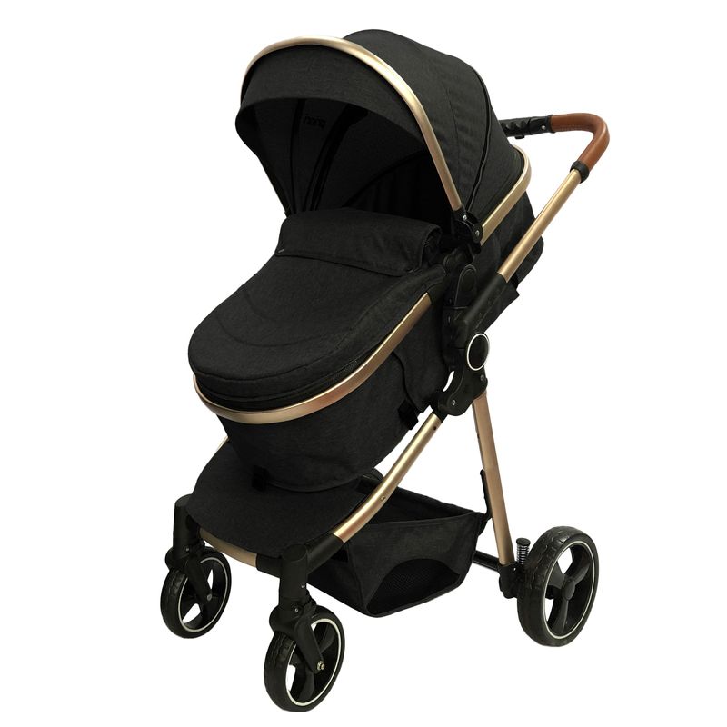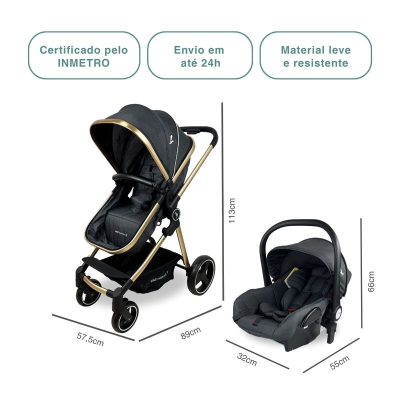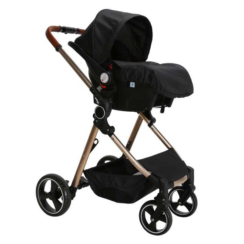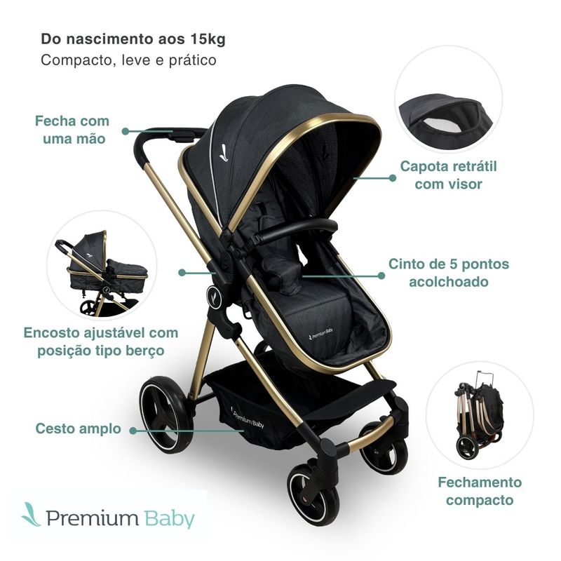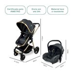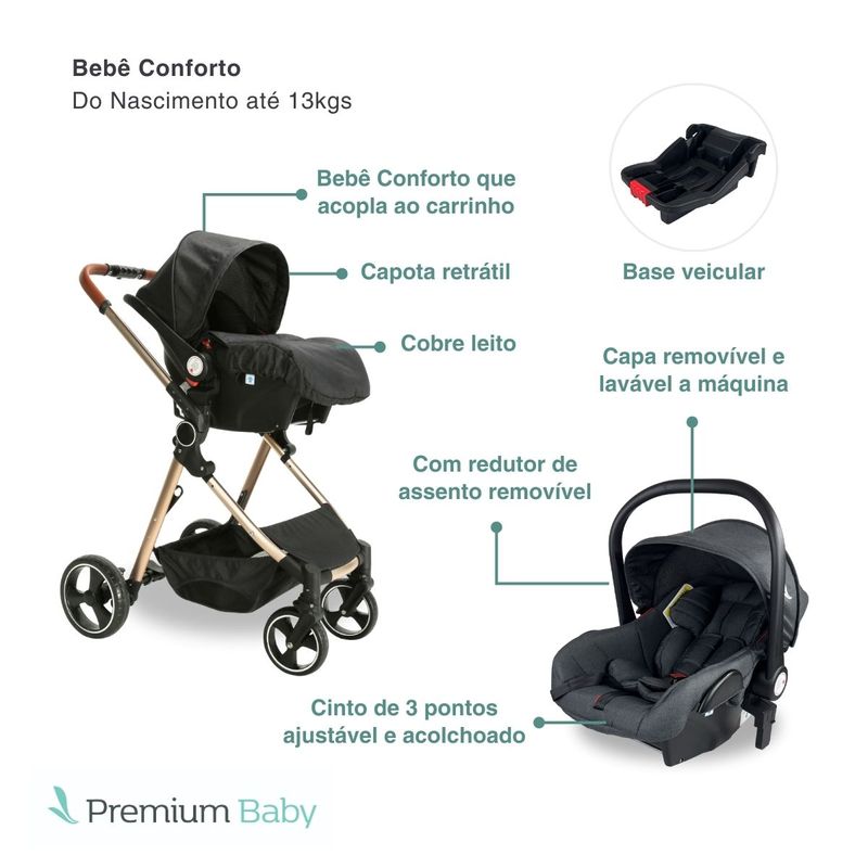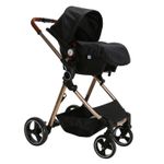 Carrinho de Passeio com Bebê Conforto + Base Travel System Trio Mike Preto/Gold Premium Baby