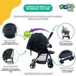 - Cinto de segurança de 5 pontos: Garante a segurança do bebê durante o passeio.