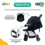- Barra de empurrar reversível: Permite alterar a direção do passeio, mantendo o contato visual com o bebê.