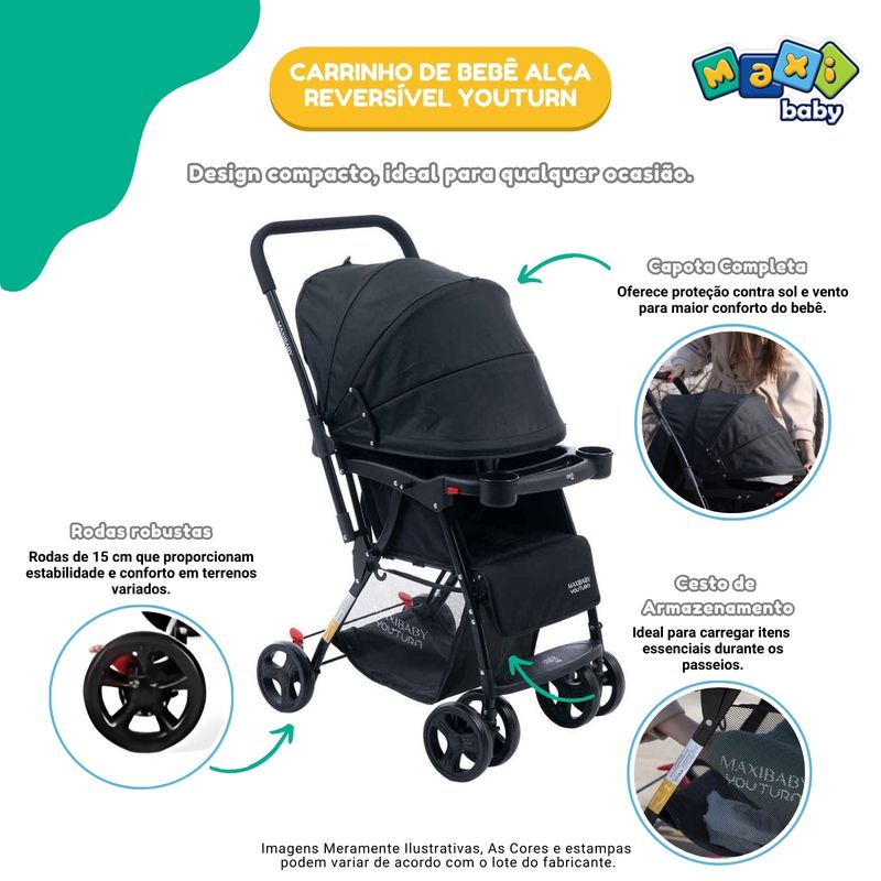Carrinho de Bebê Com Alça Reversível YouTurn Maxi Baby