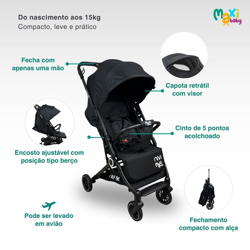 Ideal para crianças desde o nascimento até 15kgs. O carrinho NIVI da Maxi Baby é o aliado perfeito para os pais que procuram conforto, segurança para seus pequenos e praticidade no dia a dia!