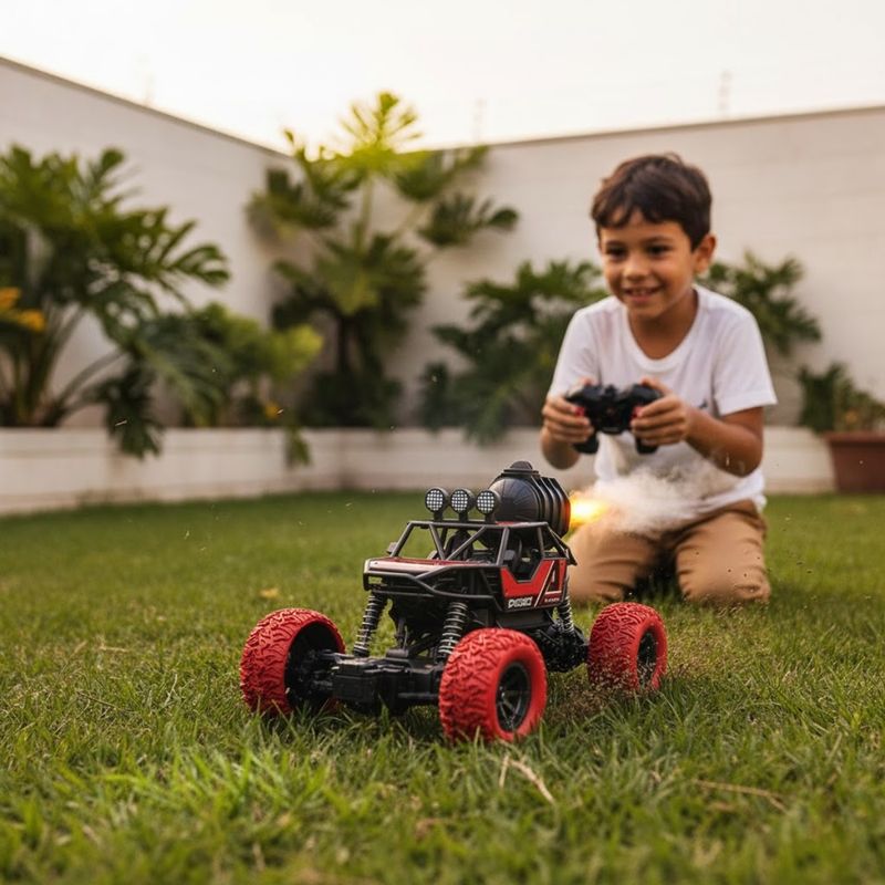 Um dos grandes diferenciais do Spray Car é sua função de spray realista, que libera efeito de fumaça realista saindo do escapamento, simulando um carro de corrida de verdade. Esse efeito especial torna a pilotagem ainda mais envolvente e atrativa, elevando a brincadeira a outro nível de adrenalina. Além disso, o carrinho atinge alta velocidade de até 10 km/h, entregando desempenho impressionante em diferentes tipos de pisos.
