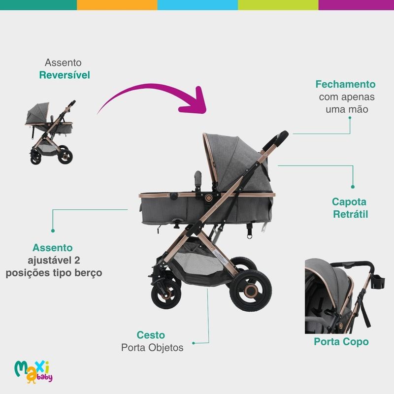 Carrinho De Passeio Para Bebê Assento Reversível Vira Berço Moisés Elysian Maxi Baby