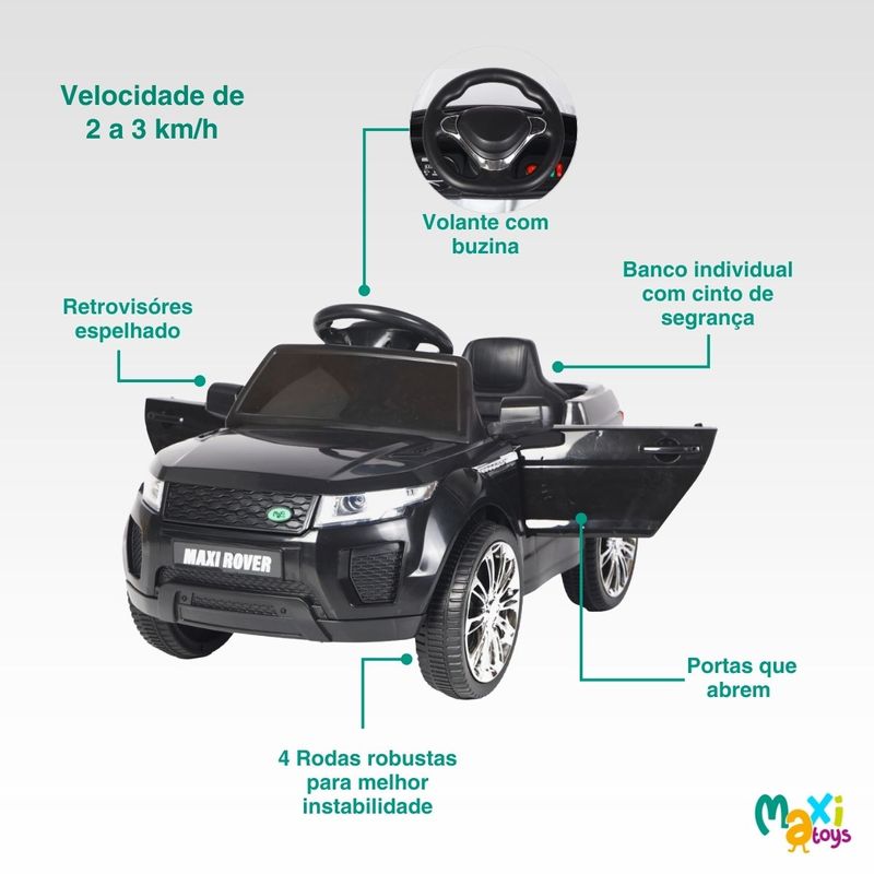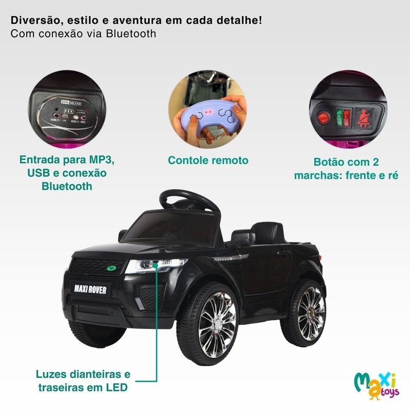 Carro Elétrico Infantil Mini Maxi Rover 2 Marchas Frente/Ré Bateria 6v Controle Remoto e Conexão Bluetooth Maxi Toys