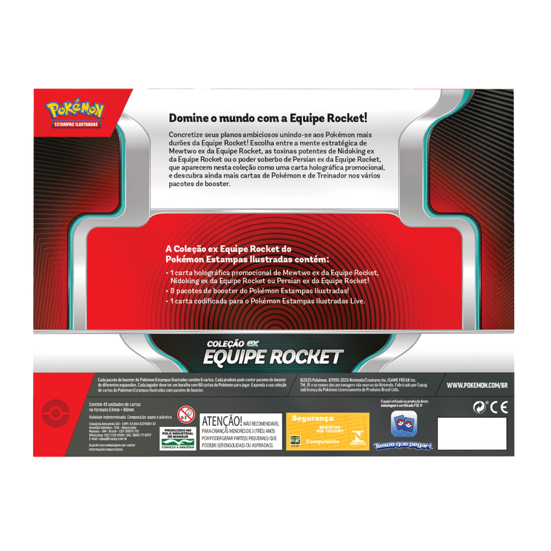 Prepare-se para o lado sombrio do universo Pokémon com a Box Equipe Rocket Mewtwo, Persian e Nidoking EX da Copag! Esta edição especial traz o lendário Mewtwo, Persian ou Nidoking EX em destaque, ao lado de uma seleção poderosa de cartas inspiradas na icônica Equipe Rocket, vilões clássicos do mundo Pokémon.