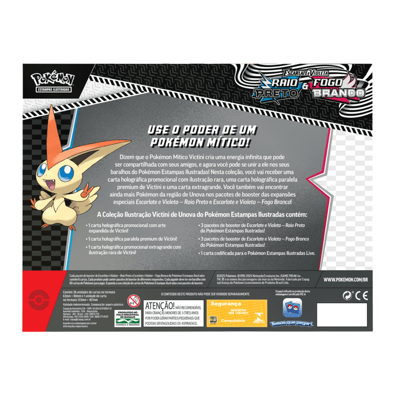 Aumente sua coleção com o baralho temático Pokémon Coleção Victini de Unova – Fogo Branco, da Copag, com 39 cartas exclusivas e totalmente em português. Ideal para fãs de todas as idades e jogadores iniciantes ou experientes, este deck traz o poderoso Victini, o Pokémon Vitória do tipo Fogo, como destaque principal.