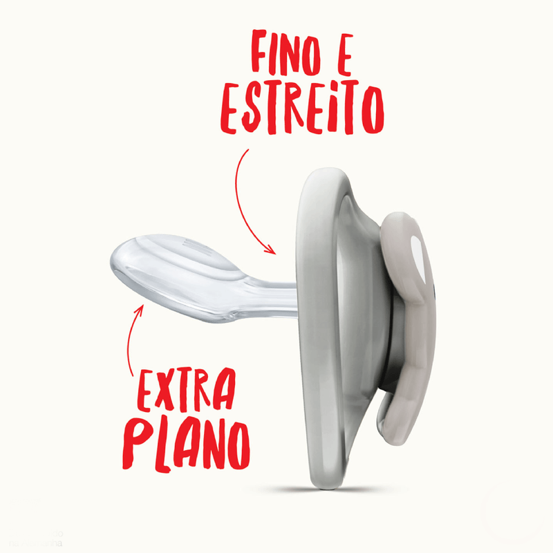 A Chupeta NUK possui design do escudo em 3D leve e arejado. Seu bico em silicone 35% mais fino e 45% e estreito. Possui um estojo protetor que pode ser utilizado no micro-ondas para higienização da chupeta e também para o transporte.