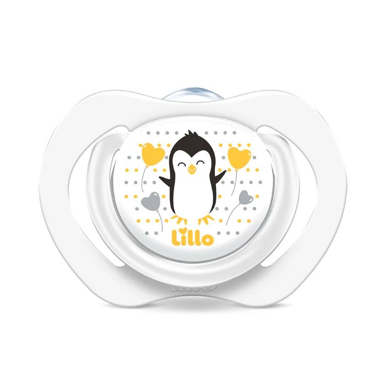 A Chupeta Design Primeiros Passos Lillo é livre de Bisfenol-A. Seu bico é em silicone macio e flexível, possui grandes canais de ventilação e bordas arredondadas. Os desenhos modernos e coloridos ilustram o botão da chupeta.
