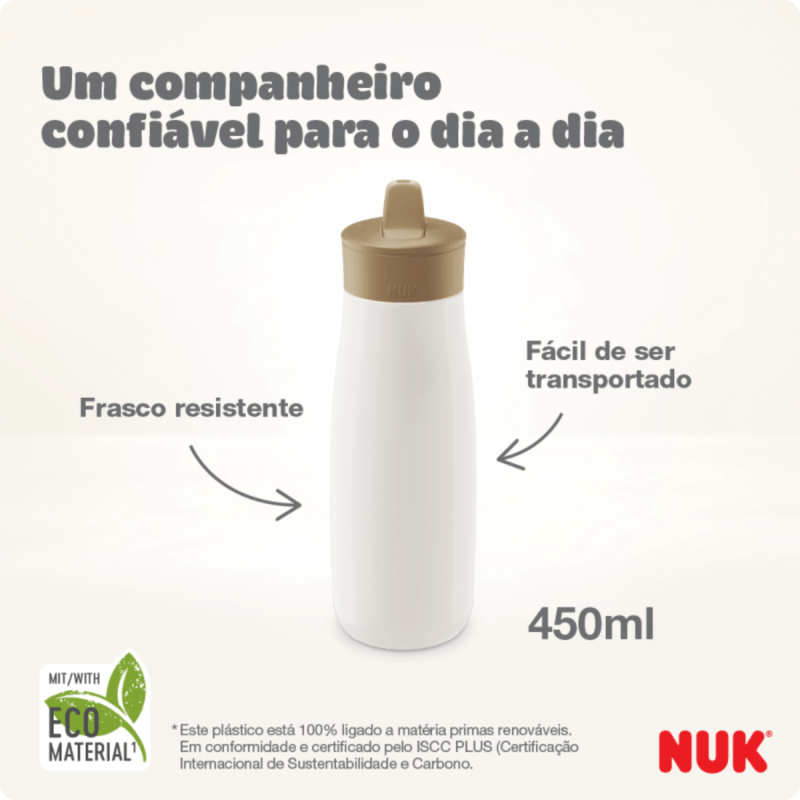 Indicado para crianças a partir de 12 meses, o copo oferece total versatilidade graças ao seu sistema 2 em 1, que permite o uso tanto como garrafinha com canudo quanto como copo com bocal resistente. O bico firme e resistente à mordida é ideal para acompanhar o desenvolvimento oral nessa importante fase de transição.