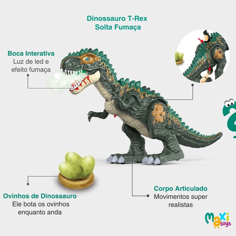 Dinossauro de Brinquedo Solta Fumaça e Emite Som Dino Rex - Maxi Toys