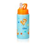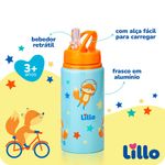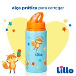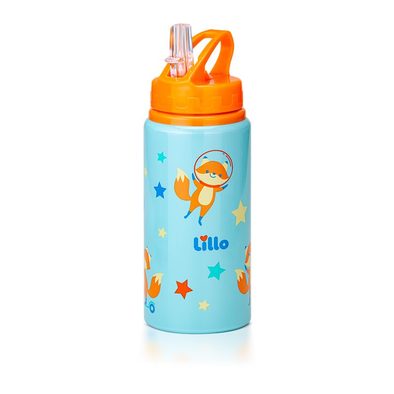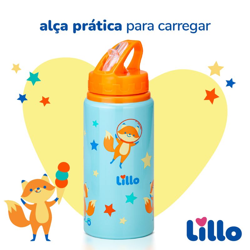 Garrafa Infantil Inox Antivazamento com Alça e Canudo Retrátil Raposa 550ml Azul/Laranja Lillo