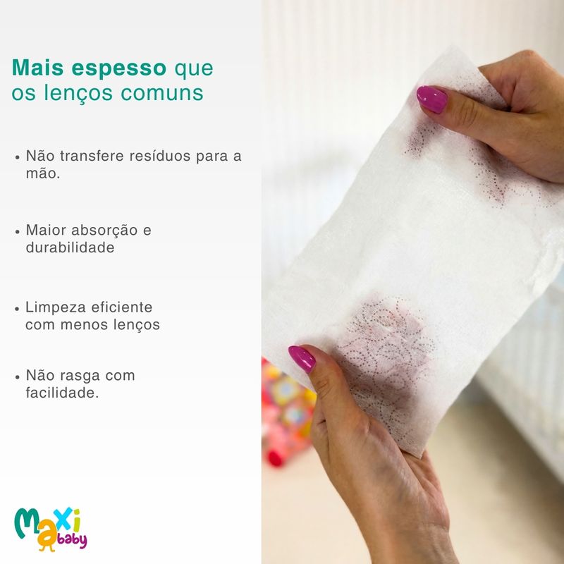 - Ideal para trocas de fraldas, limpeza rosto, mãos e boca