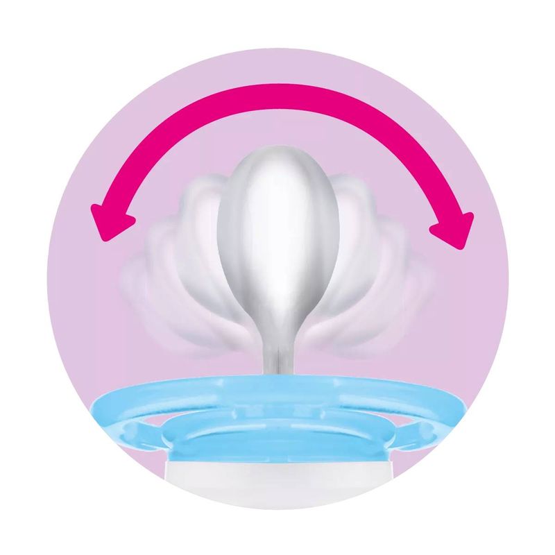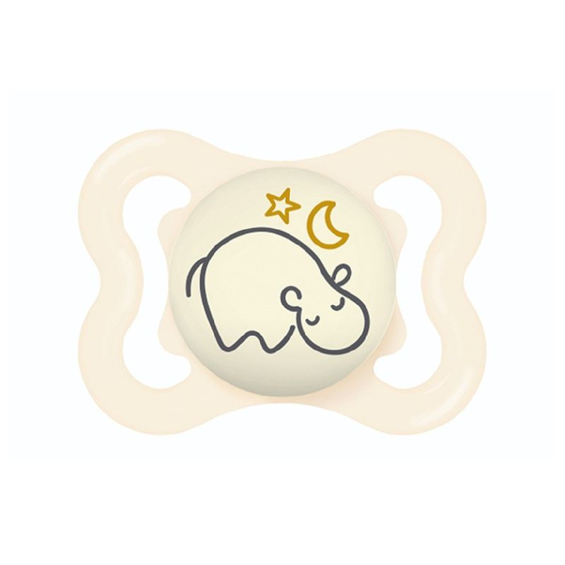 Além de ser super leve, ela possui grandes canais de ventilação que facilitam a circulação de ar durante o uso e, seu botão central conta com tecnologia que brilha no escuro, podendo ser encontrada facilmente sem precisar acender a luz. Também possibilita a utilização dos prendedores Clip e Clip It da MAM e acompanha estojo para higienização e transporte.