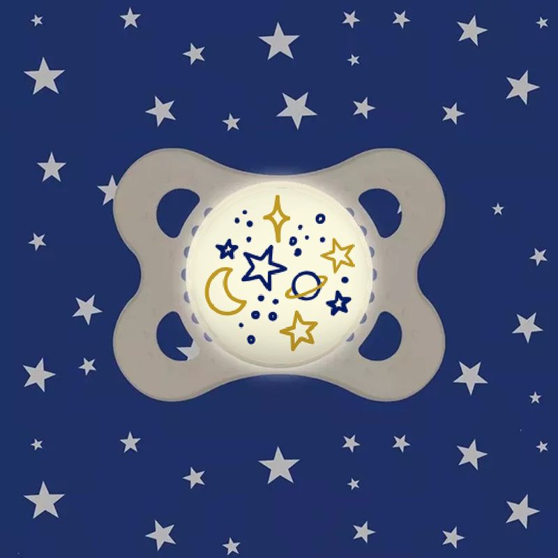 Além de ser super leve, ela possui grandes canais de ventilação que facilitam a circulação de ar durante o uso e, seu botão central conta com tecnologia que brilha no escuro, podendo ser encontrada facilmente sem precisar acender a luz. Também possibilita a utilização dos prendedores Clip e Clip It da MAM e acompanha estojo para higienização e transporte.