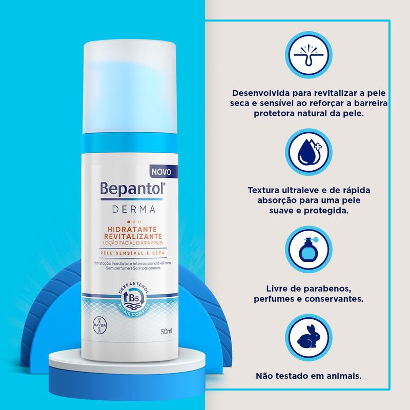 - Conteúdo da Embalagem: 2 Loção Facial Diária Derma Revitalizante 50ml Cada Bepantol Derma