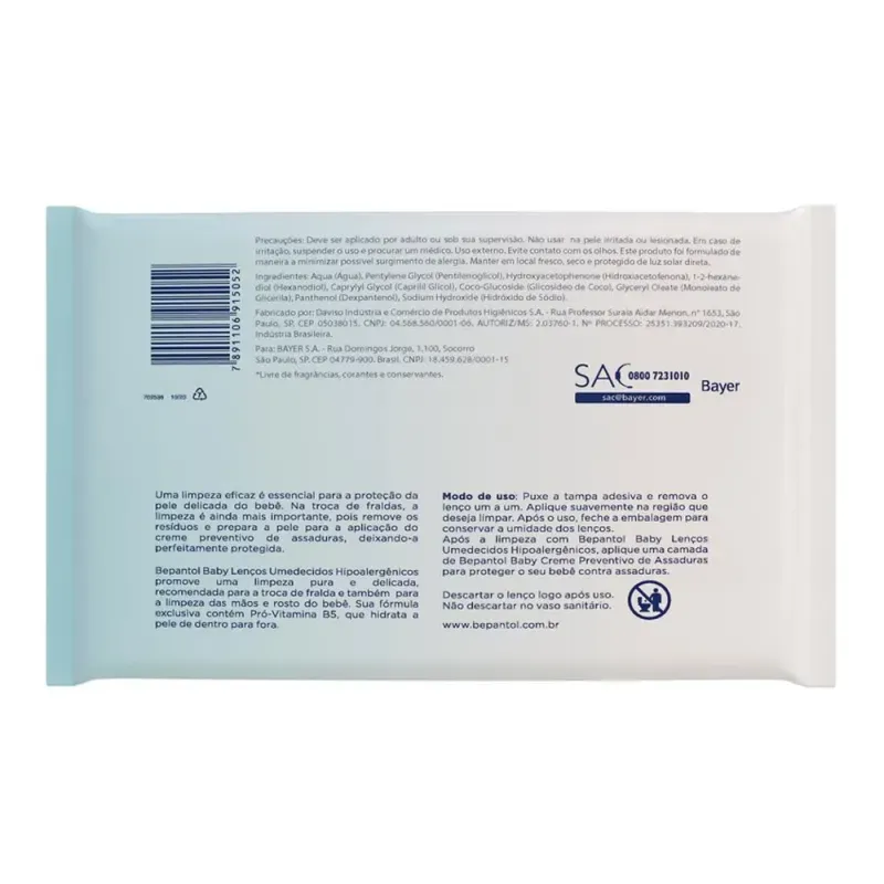 Além disso, Bepantol Baby Lenços Umedecidos é clinicamente testado e Hipoalergênico.