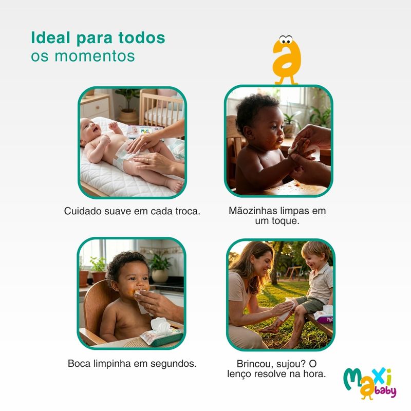 - Ideal para trocas de fraldas, limpeza rosto, mãos e boca