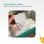 Para tornar o uso ainda mais prático, a embalagem dispõe de tampa plástica rígida, que preserva a umidade dos lenços por muito mais tempo e evita desperdícios. Cada folha possui tamanho 19 x 13 cm, oferecendo ótima cobertura e facilitando a higienização completa do bebê. A versão com 50 unidades garante excelente durabilidade, sendo ideal para levar na bolsa maternidade, usar em casa, viagens e em qualquer momento de necessidade.