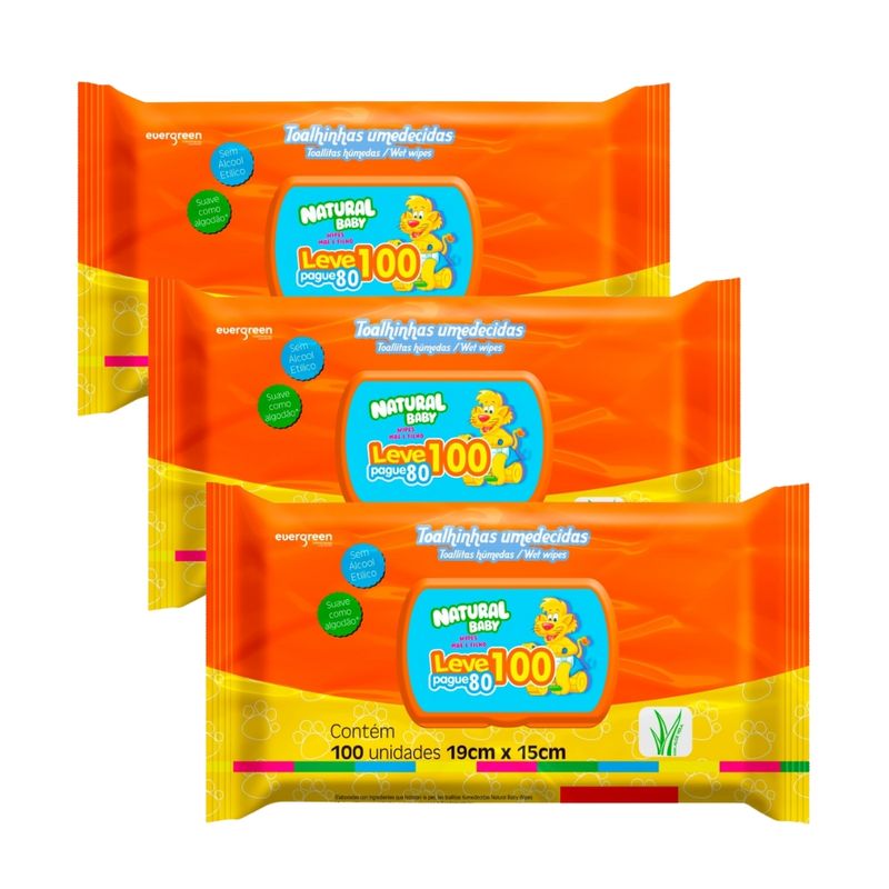 Kit com 3 Lenços Umedecidos Natural Baby 100un cada - Evergreen