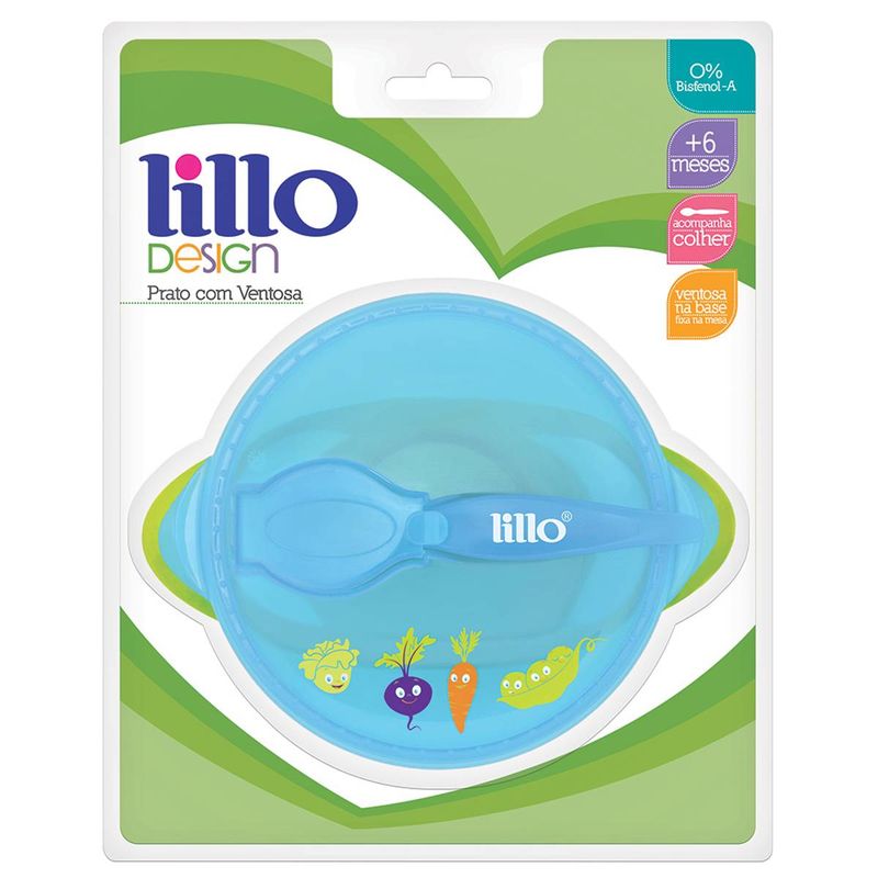 Kit Refeição Infantil Prato C/ Ventosa e Colher Azul - Lillo
