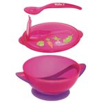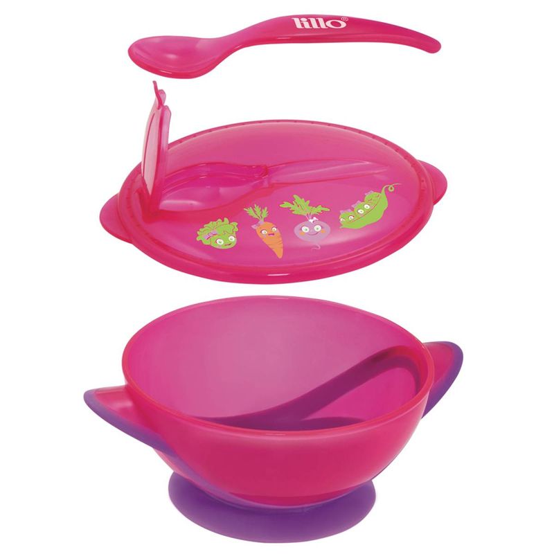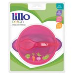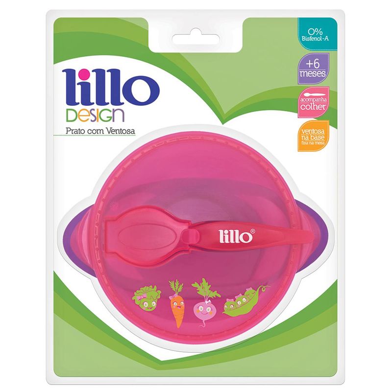 Kit Refeição Infantil Prato C/ Ventosa e Colher Rosa Lillo