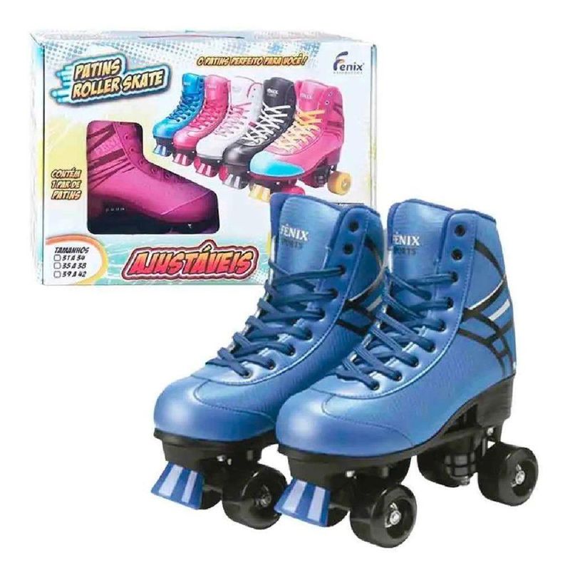 Patins 4 Rodas Roller Skate Ajustável Tam 35-38 Azul - Fênix