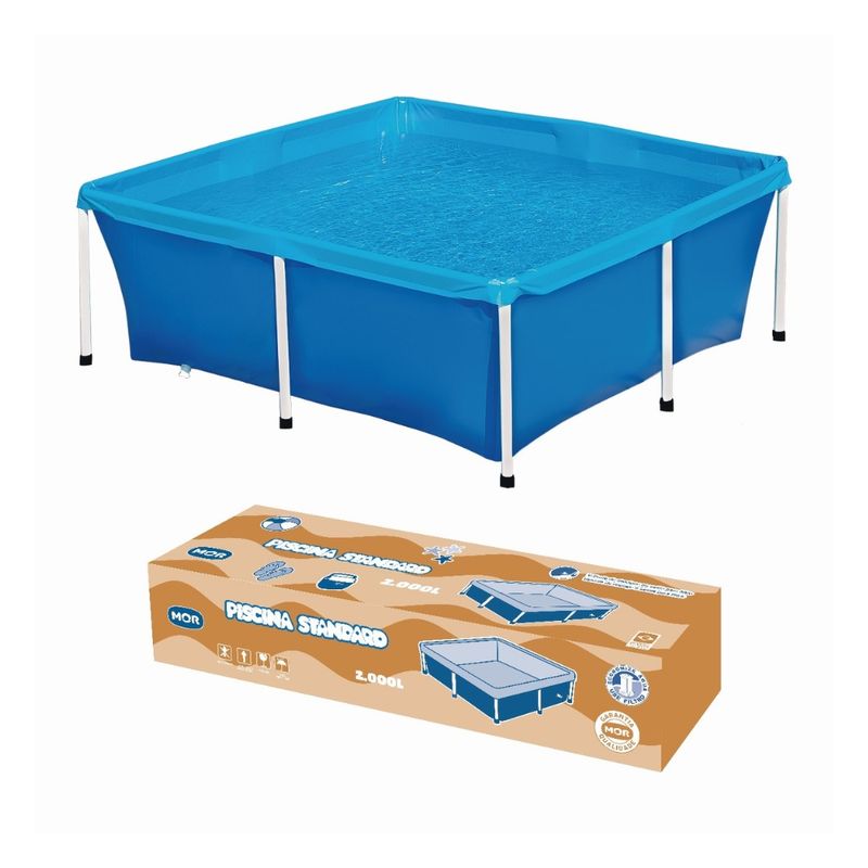 Constituída de estrutura em aço com acabamento em pintura epóxi à pó branca, a piscina 2.000 litros da Mor possui peças plásticas em polipropileno com sistema de encaixe, que facilitam a montagem.