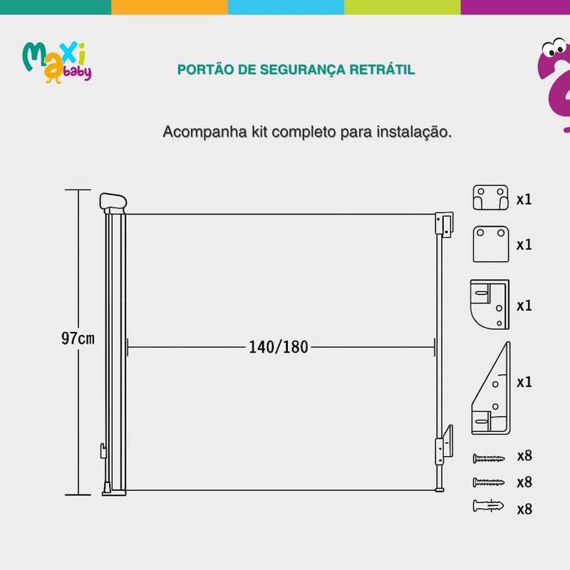 Ideal para quem busca praticidade, segurança e versatilidade em um só produto, o Portão de Segurança Retrátil da Maxi Baby torna o ambiente doméstico mais protegido e confortável para toda a família.