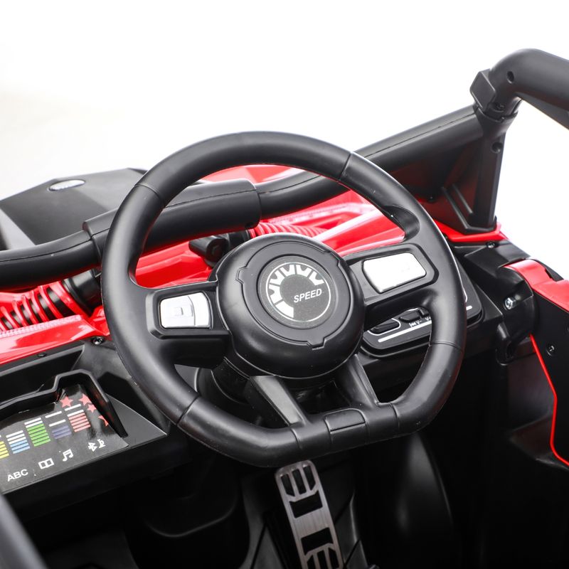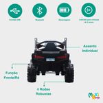 Para tranquilidade dos pais, ele conta com controle remoto, permitindo assumir a direção quando necessário, enquanto as crianças se divertem aprendendo a controlar o volante, o encosto confortável e os apoios de braço que simulam a experiência de dirigir de verdade.