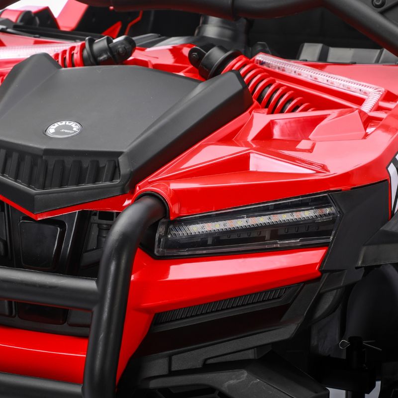 Equipado com bateria recarregável 12V 4.5Ah e dois motores potentes 12x380*2, o Mini Quadriciclo ATV garante estabilidade em qualquer terreno entregando a dose certa de emoção, alcançando até 5 km/h em um passeio suave, estável e controlado.
