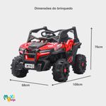 - Alimentação: Controle: 2 pilhas AAA não inclusas. Carrinho: Bateria 12V 4.5Ah recarregável